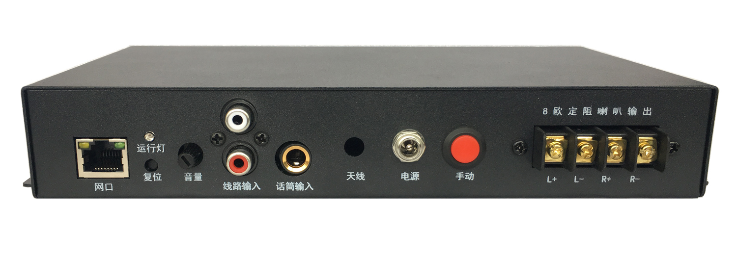 ◆內(nèi)置嵌入式網(wǎng)絡(luò)語音解碼模塊、2*50W/8Ω雙通道輸出功放,,驅(qū)動(dòng)外接音箱工作,設(shè)備運(yùn)行穩(wěn)定性高。